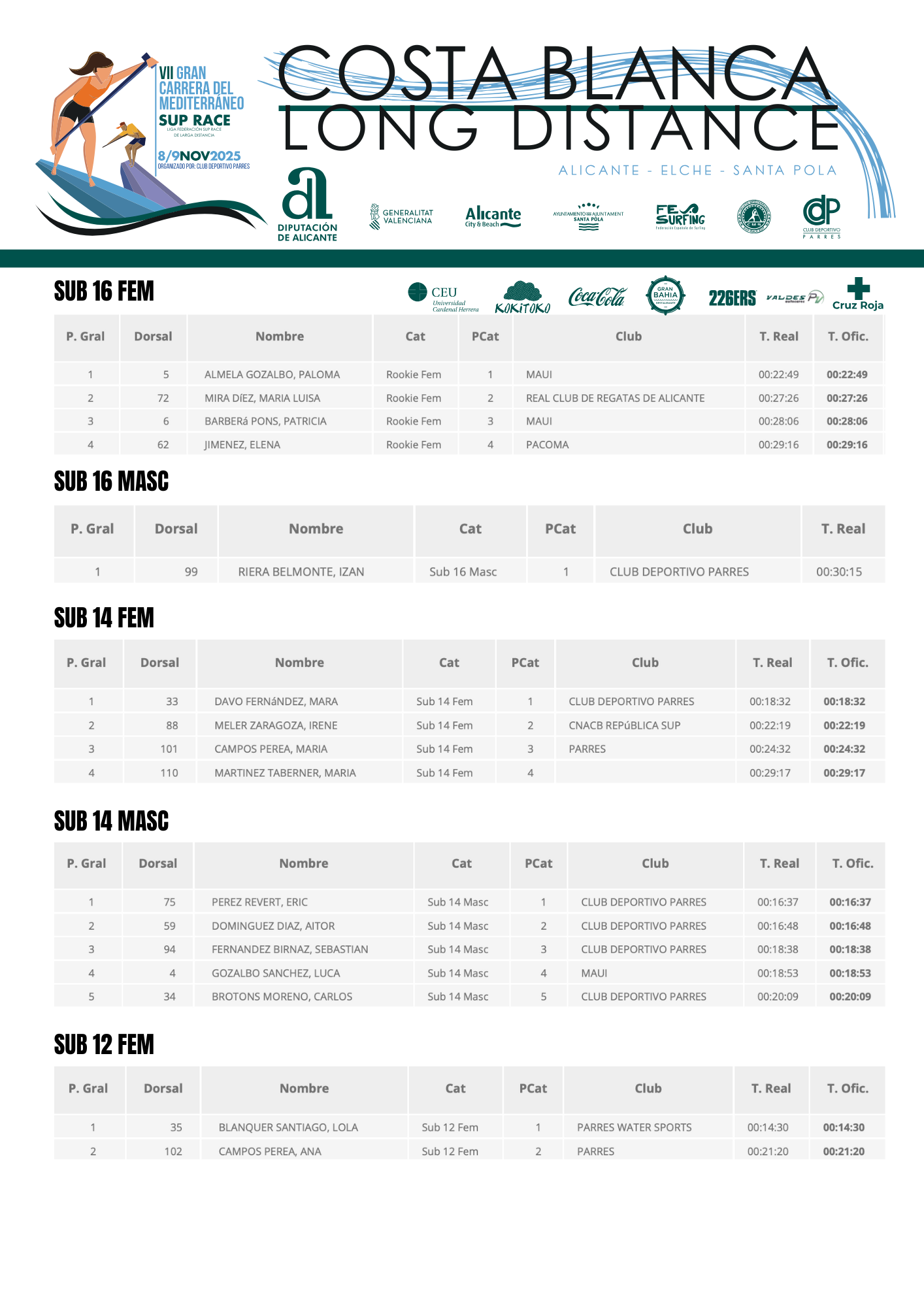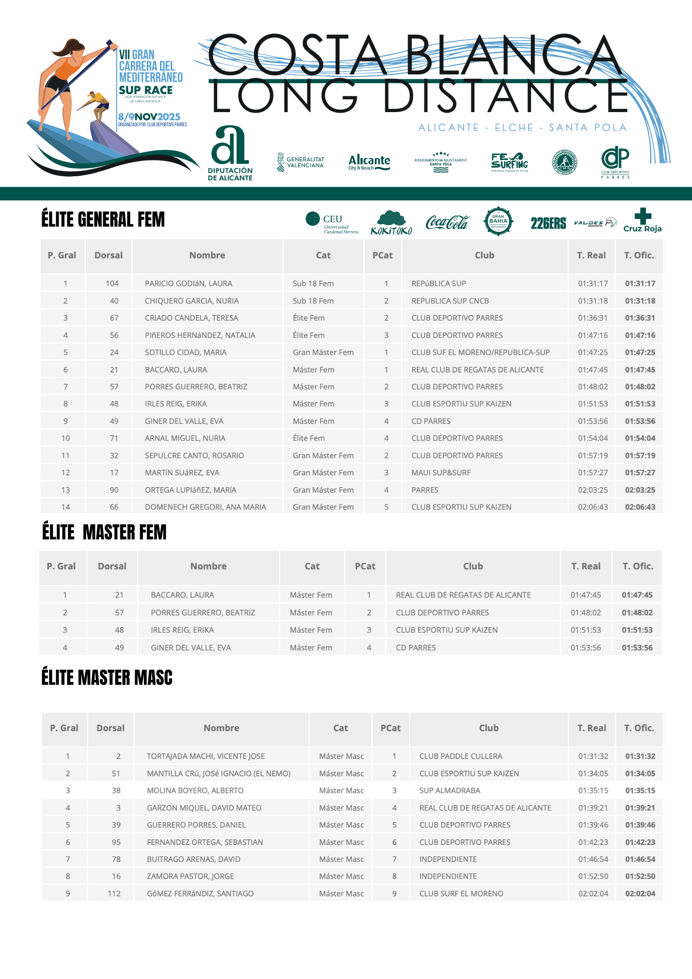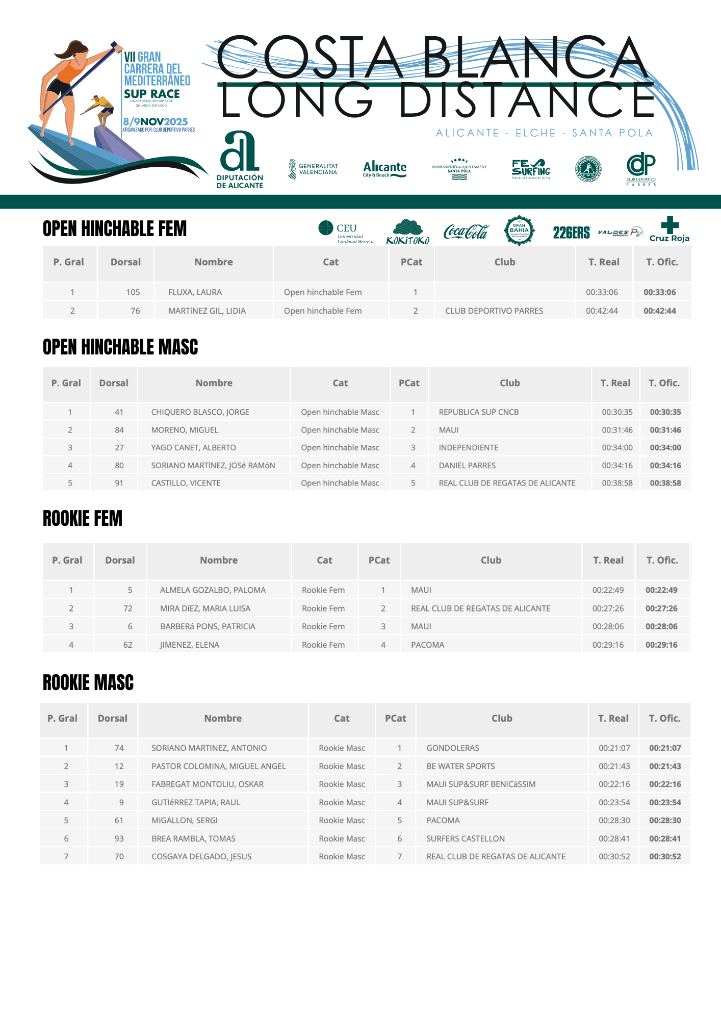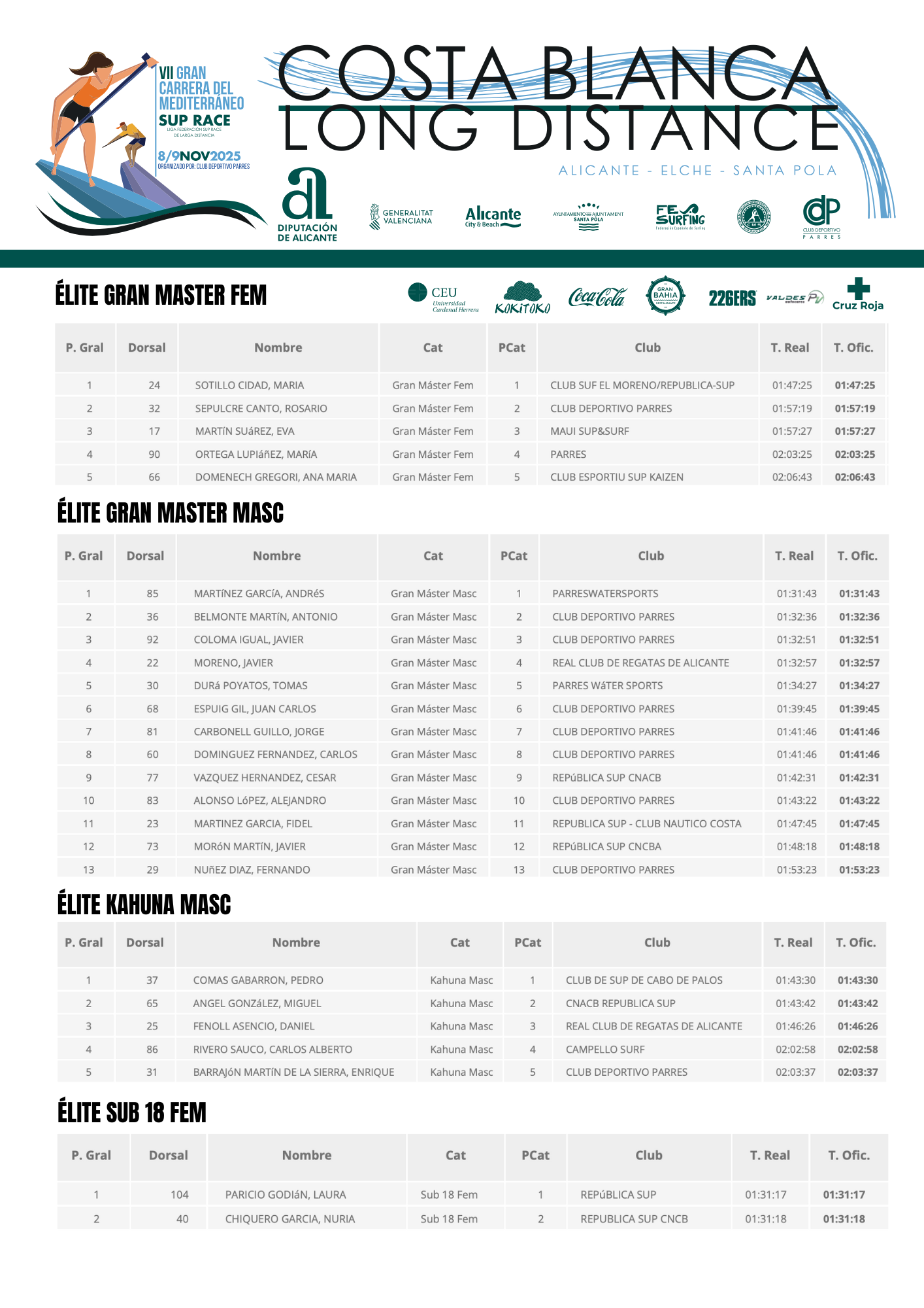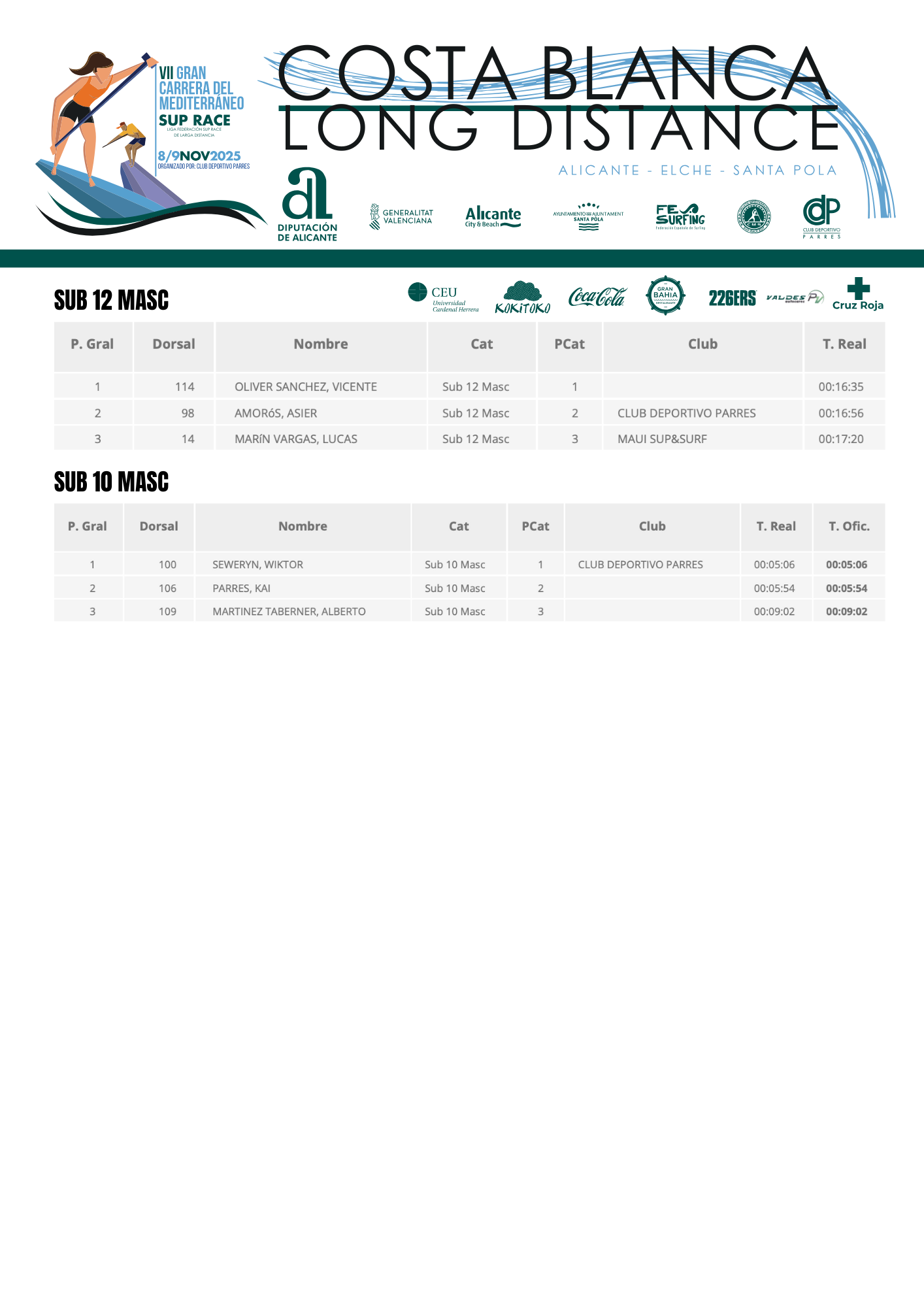 Descubre los emocionantes resultados de la VII edición de la Gran Carrera del Mediterráneo SUP Race, celebrada el 9 de noviembre de 2025. Un evento único que reúne a los mejores competidores en una prueba de resistencia y habilidad en el mar.